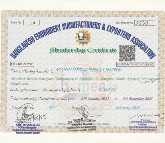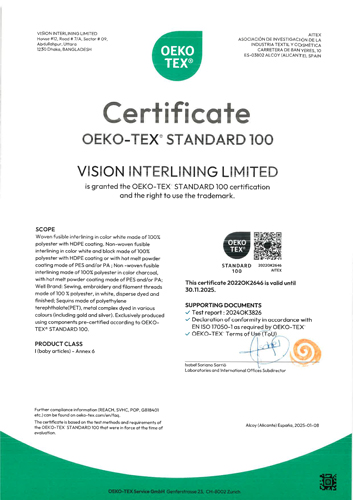 As a responsible company, Vision Interlining Ltd. structures its activities according to international standards and norms recognized within the industry.